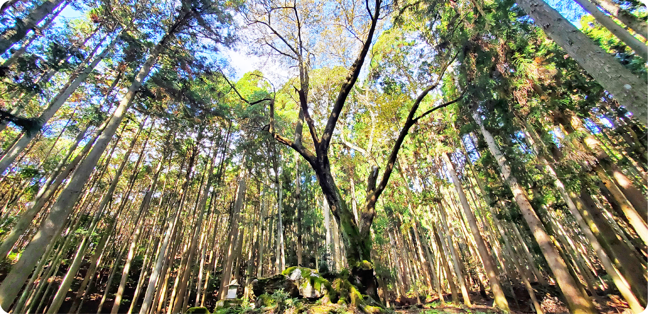 既存のスギやヒノキを活かした林間キャンプ場を計画します。キャンプ場の整備として、テント設営ができるように既存の樹木を適度に伐採し手入れをしていきます。キャンプ場としての整備が同時に、長王の森の環境改善に繋がることを目指します。
